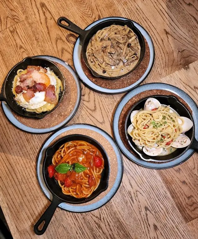 香濃的卡邦尼意粉,加入了咸香的羅馬風乾豬面頰肉、煎蛋及黑椒,相比平日吃的卡邦尼意粉,這個是重口味之選﹗另外還有蕃茄羅勒意粉及松露蘑菇扁意粉。