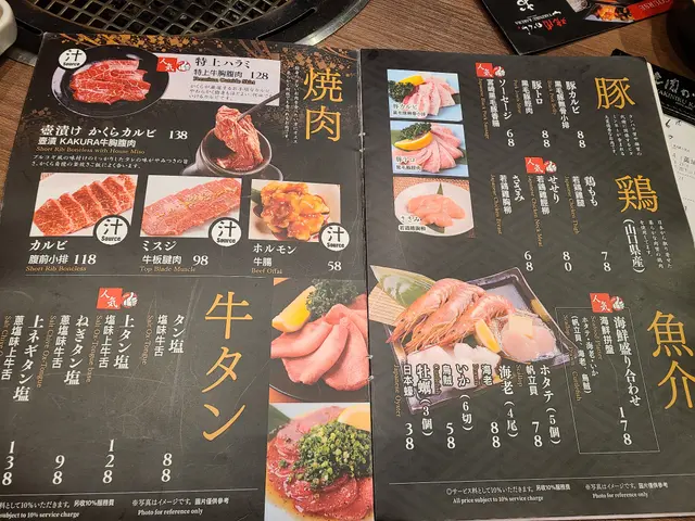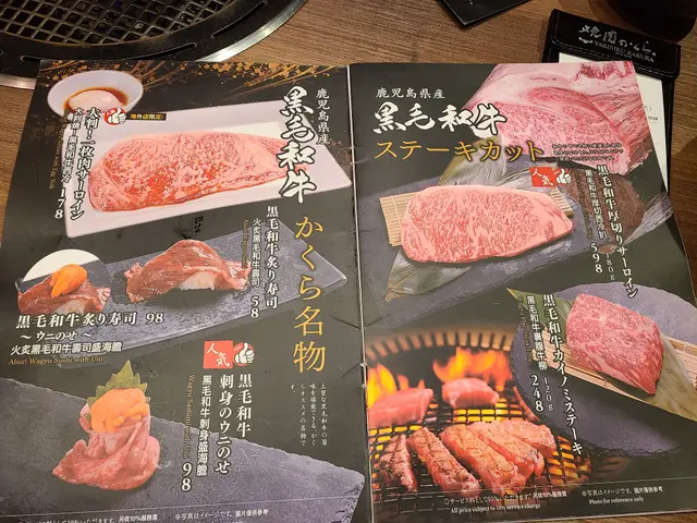 餐牌:賣點係由日本直運九州產既A5黑毛和牛。有套餐,黑毛和牛單點,牛豬雞單點,海鮮單點,蔬菜單點,沙律,涼拌小食,湯同麵飯,飲品有酒類同非酒精飲品。落單掃QR code。