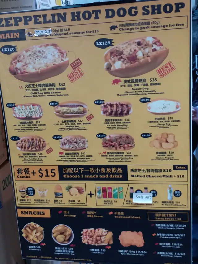 我哋就買咗$42.00嘅火炙芝士辣肉醬熱狗,$38.00嘅澳式特情熱狗,$36.00嘅美國洋蔥圈熱狗,同$38.00嘅田園風味熱狗,加$15.00要薯條同有汽檸檬茶.