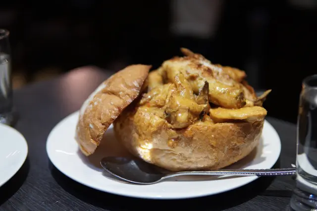 舊鋪無晒位,職員話要提早預訂,所以安排同事帶我地行去官也街附近分店,鋪頭好乾淨,職員好有禮貌🌟檸檬白酒煮蜆D蜆唔會過熟,好肥同鮮甜,加檸檬煮酸酸地好開胃,忍唔住不停飲個湯🌟麵包焗葡國菜麵包焗到好乾身,超脆,職員等我影完相就用鉸剪剪開,麵包焗到好乾反而吸多左醬汁,雞有少少雪味,份量好大,味道正常🌟葡式乳豬釀飯乳豬薄皮,唔似中式傳統乳豬甘會好脆皮,系屬於半脆半軟,醃得入味,最特別系個飯底,好多唔同味道加埋一齊,可以一試二個人叫左三樣食物都食唔晒,而且價錢好平,呢間需然食物唔算系高水準,但系唔難食,比起好多葡國餐廳算系好,真系每樣都好足料,價錢較平…查看更多