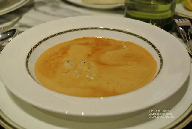 有訂枱, 不過其實walk in 都可以因平日唔多人有dinner set,所以唔諗...就order 2份是日有推介organic Merlot 紅酒同fresh milk老公就叫左紅酒, organic 就唔識欣賞, 但老公話透下氣之後都幾好飲喎座位側邊有音樂聽, 佢只會自己彈奏, 唔會逐枱叫你點唱有人生日就夾埋職員送上蛋糕, 兼且彈奏生日歌餐廳整體感覺都舒服set dinner 來之前, 先食住面包, 面包無咩特別, 有少少硬身....跟住因為無煙三文魚呢個前菜, 所以我同老公都點左龍蝦湯個湯唔會話有層燶味, 濃度啱啱好, 幾塊龍蝦肉, 超級鮮甜超好味呀!!
