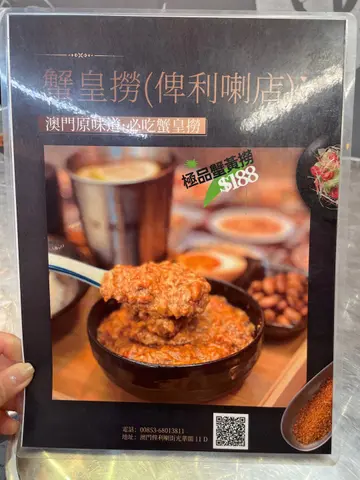 因為要去睇傢俬順便去筷子基店分店的蟹皇撈,以澳門今時今日物價有呢個份量直頭係超值!!每一啖都係蟹黃同蟹肉鮮味,就連男朋友對蟹黃咁高求嘅人都讚口不絕,跟套餐戈個湯都足料,原本諗住自己獨食,好彩有帶埋佢一齊黎試牛雜煲係用過gas爐熱住黎食,好足料炆得好入味,蘿蔔又唔怕有根,口感好好。香水檸檬同檸檬益力多兩杯都好解膩,我兩杯都中意店鋪環境乾淨又唔怕坐得逼,有下次!極品蟹黃撈飯套餐蟹黃蛋牛雜煲酸菜魚香水檸檬茶…Read More