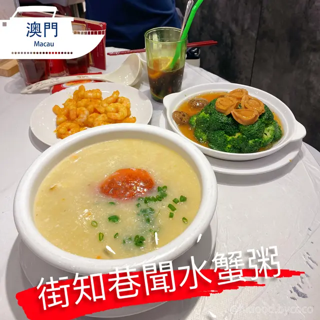 澳門水蟹粥都好多好出名,有啲餐廳一般般,有啲價錢亦好貴,今次唔打唔撞係官也街搵到呢間餐廳,因為怕好多人,所以提早六點左右就食晚餐🙈