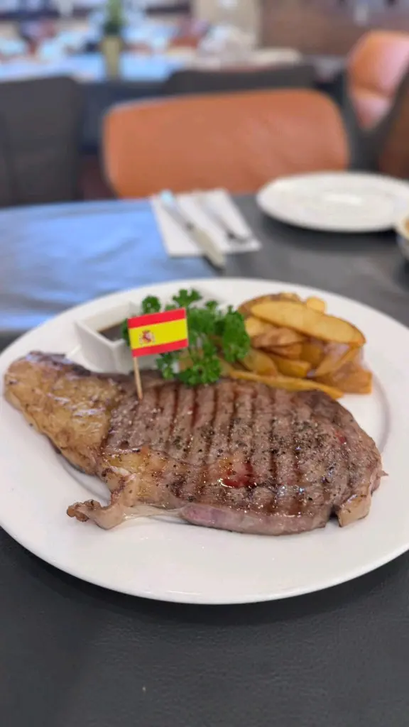馬介休球是必試的經典,每一口都鬆脆可口,搭配特製醬汁更添風味。西洋焗鱸魚則鮮美可口,魚肉嫩滑,焗得恰到好處,讓人讚不絕口。最後,藍芝菲列牛排質地柔嫩,搭配冰檸檬茶,清新解膩。