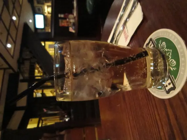 友善的侍者先端上Oban 14年威士忌及一杯冰水。我將酒杯遞高對著白色背景,色澤金如深秋,搖兩下,掛杯留痕,喝下去是我喜歡的較活潑富果味;用叉子取兩滴水加進去,再嘗,就如墨化開了,墨路內容更為明顯,有梨味,蜜糖甜,卻不失酒勁,刺激著嘴唇。友人說她的Gingle Ale 味道也不錯。