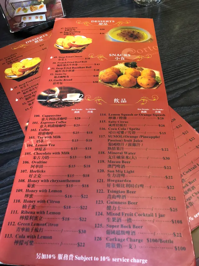 在葡國餐廳,馬介休也算是必點的。這道菜既為廚師推介,又有我們喜歡的酥皮,很自然就點上了。可是沒想到有兩大塊,這麼大份!外面的酥皮還算鬆脆,裡面的馬介休和薯蓉卻真的太太太太多了!而且畢竟薯蓉比較乾,雖然味道不錯,我卻真的沒法吃完一整個了。