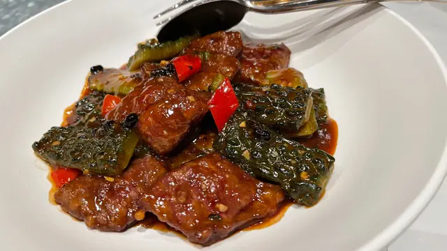 每一個菜式都好有心機,而且好有水準好好食,特別係燒鵝外脆內嫩,好多肉汁,必食之選,今次叫咗個時令菜,苦瓜牛肉,苦瓜同牛肉都係唔同嘅,苦瓜係沖繩苦瓜,牛肉係和牛,個配搭非常好味,