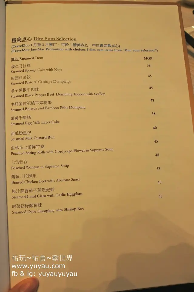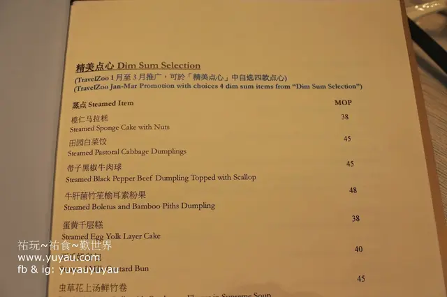 點心可選四款,單點每款要澳門幣38-58,份量跟單點是一樣的,不會因為是套餐就變少