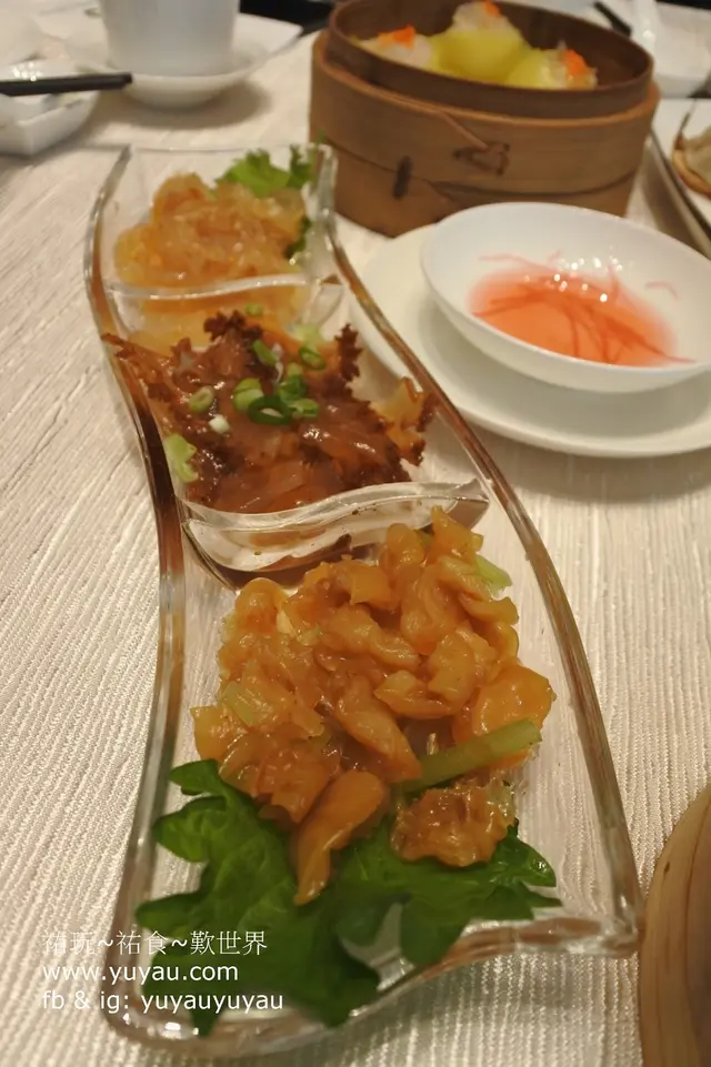 小吃就點了海蜤三重奏,由下至上分別是芹香海蜤頭、醋香紅海蜤及XO醬海蜤條。