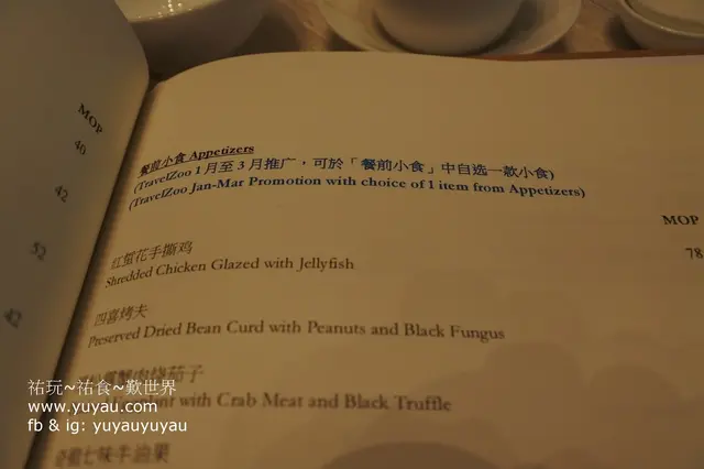 餐前小食可選一款,單點價由澳門幣58-78。