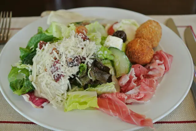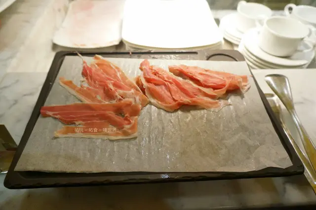 食物方面選擇不多,當中必試的是現切Parma ham,顔色很粉嫩,味道又不會死咸