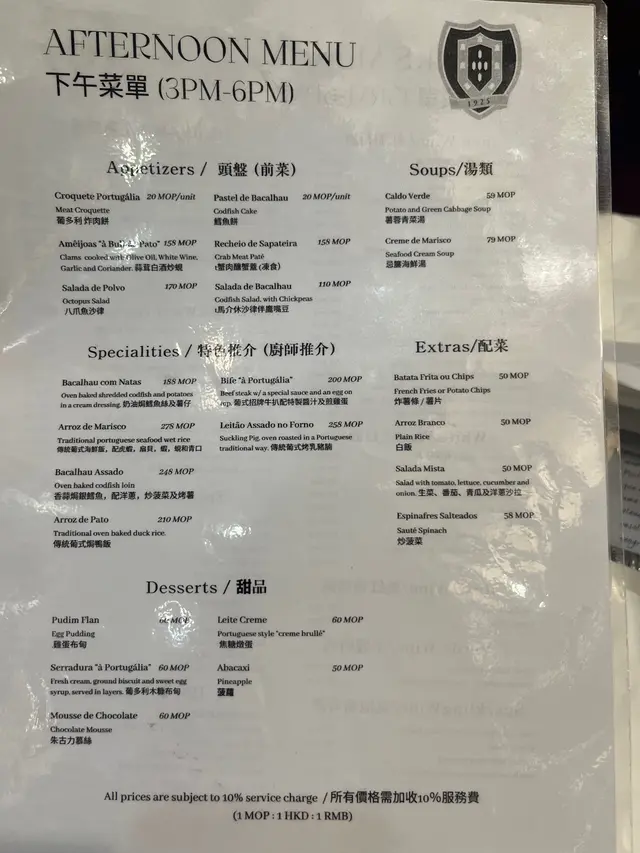 如果想試下食葡國菜,可以揀tea time時間試,價錢都無咁貴!
