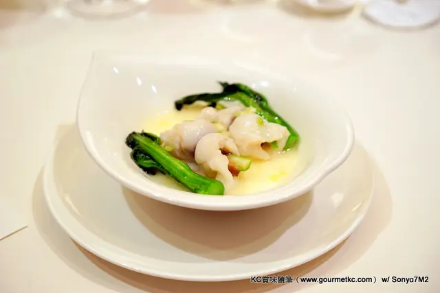 在素菜餃及燕窩海龍皇餃以後,白玉蒸星龍卷及碧綠百花帶子也是以海鮮食材的手工菜。黑豚肉以日本尖椒紅棗去爆炒過,甜中帶辣的味道也很醒胃。甜點是楊枝甘露香芒布甸,香甜之餘份量也點到即止,不錯。