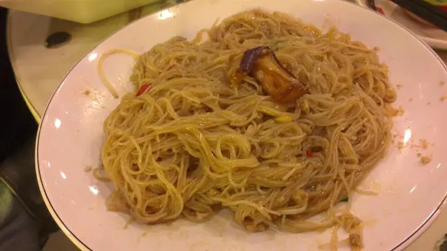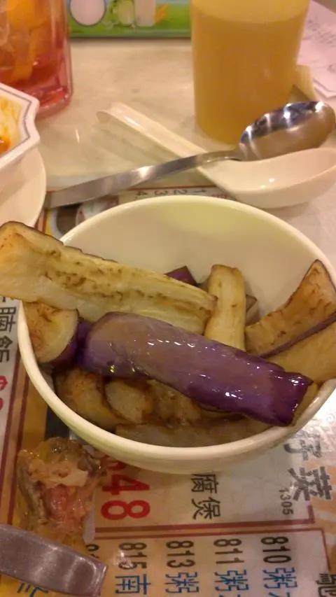 魚香茄子炆米,但係得一小舊茄子兩個阿姐你推我讓,又話O吾可以轉其他O野食,我O地嘈左幾句先有呢碗炸茄子,但我想食忟不是炸,佢就不停話"呢碗茄子夠O家啦