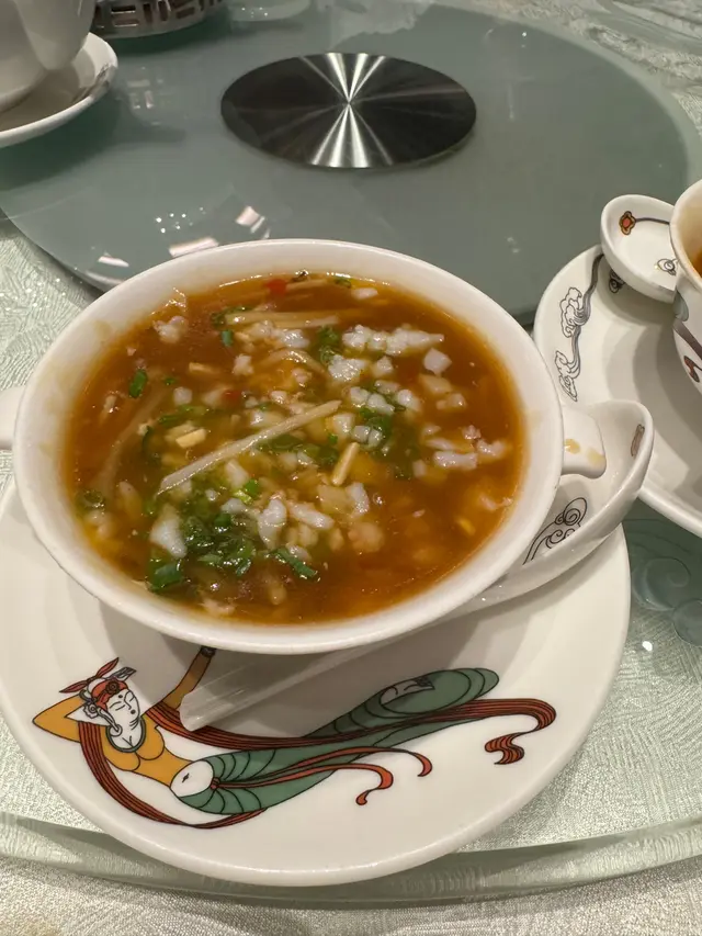首先,酒店位置方便,容易搵,如搭地鐵在會展站下車出B3 出口好快就可以到達.先由頭盤講起:)口味:點左海蜇頭,熱素鵝,香麻貢菜,味道正常,沒什麼特別.口味:叫了西班牙黑豚肉叉燒,因本人係唔食豬肉,所以評價唔到,但朋友說是可以的.釀蟹蓋:這菜應該算是餐廳招牌菜,蟹肉的確足夠,味道尚可.湯羹:我哋點了酸辣海鮮羹和鮮鮑花蛤海鮮湯,前者不值得推薦,花蛤海鮮湯有鮮味比起酸辣海鮮羹好一點.主菜: