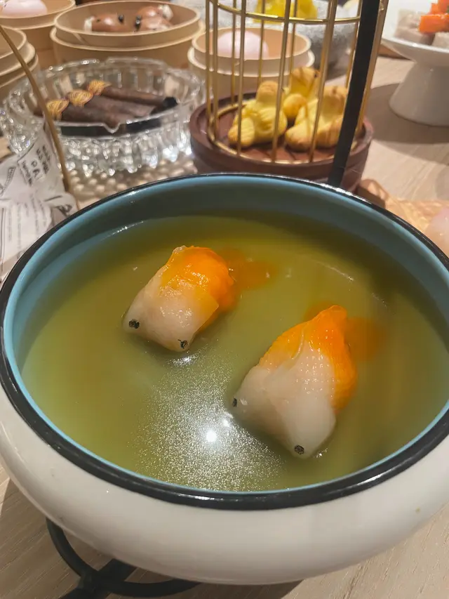 今晚和朋友享受了一場舌尖上的藝術盛宴!每一道點心不僅名字充滿詩意,造型更是巧奪天工,將傳統風味與創意發揮得淋漓盡致!金魚戲水湯汁清鮮,蝦餃形如金魚悠游非常逼真,皮薄餡足,鮮美湯底與彈牙蝦肉交融,盡顯細緻功夫。鳳梨雀仔造型靈動可愛,鳳梨餡酸甜清爽,外皮軟糯內裡綿密!熊仔朱古力包可愛到捨不得吃!朱古力內餡濃郁流心爆漿,包子鬆軟香甜!粉紅佳人餃皮透薄帶粉紅色,很嬌俏,龍蝦肉鮮甜飽滿!天鵝酥橙紅色造型精緻如藝術品,酥皮層次分明,內餡滷水鵝肉香濃入味,鹹香中帶著酥脆,令人回味無窮!雪茄春卷黑色春卷時尚像雪茄,內餡水煮魚麻辣鮮嫩,芝麻封口增添香氣,創意與川味碰撞出火花!抱抱蝦餃蝦餃皮Q彈透亮,內裹整隻鮮蝦,口感爽脆鮮甜,造型萌趣可愛!金玉滿堂香芋與番薯的自然甜香,搭配蜜糖,口感綿密香甜!小小梨子外型逼真可愛的鳳梨,黑椒牛肉餡香辣濃郁,肉汁鎖在酥皮中!麻婆豆腐小籠包創意十足!麻辣鮮香的麻婆豆腐與湯汁豐盈的小籠包完美融合,辛辣中帶溫潤,顛覆傳統!台灣肉鬆飛餅飛餅卷住好多肉鬆,十分鹹香,滋味十足!紫蓉八爪魚紫色蓮蓉內餡,口感綿密細膩,搭配八爪魚的造型好可愛!潮汕炸蠔餅炸得金黃香脆,外酥內嫩,蠔肉飽滿多汁!老香黃雪山包外皮酥軟如雪,內餡叉燒與老香黃的搭配獨特,酸甜鹹香交織,風味層次豐富!從造型到味道,每一道菜都展現廚師的匠心獨運,真是視覺與味覺的雙重享受!…Read More