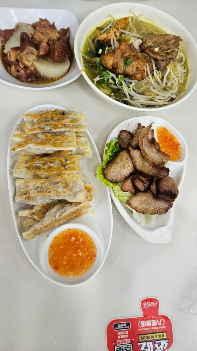 今晚來到深水埗這家店,乾淨明亮,價錢貼地,份量多,料好足!🐖 泰式豬頸肉雖然二三十蚊,但是份量多,豬頸肉烤得邊緣帶點焦脆,肉質彈牙爽口,充滿炭烤香氣!🏆 酸菜湯香茅雞扒手工麵雞扒煎得恰到好處,外皮微脆,內裡肉汁飽滿,香茅的氣息已經醃漬入骨。搭配的手工麵體更是彈牙有勁,吸附了滿滿的酸菜湯汁,唏哩呼嚕一碗下肚,大呼過癮!🍲 蘿蔔牛腩這道菜燉煮的功夫了得!牛腩軟爛卻又不失肉的纖維感,濃郁的醬香完全滲透其中。蘿蔔吸飽了牛腩的肉汁,清甜軟糯!🥟 煎白菜餃子 外皮煎得焦香脆口,內餡是清甜的白菜粉絲與鮮美肉汁,飽滿紮實!…Read More