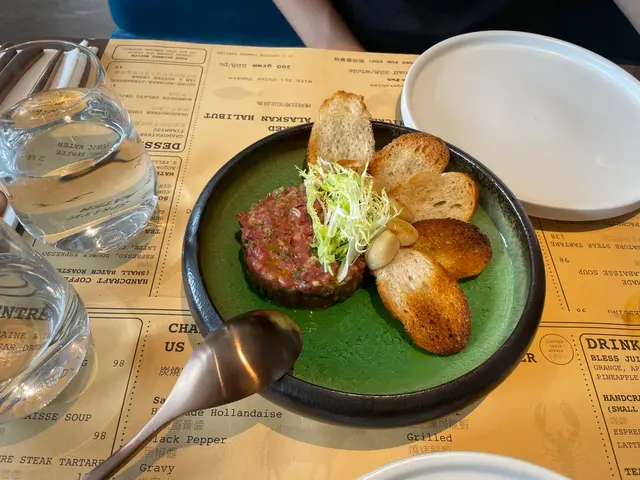 真係好L難食。然後個waiter後埋黎話:”廚師特登整個疊新嘅俾你地!”事實係拎返入去個碟,因為個2條蝦毛我撥開左去側邊,同圖片嘅位係一樣! 仲有就係呢條蝦毛叫虎蝦?2.牛扒我order 5成熟,個塊扒出到黎,我分唔到係牛定豬