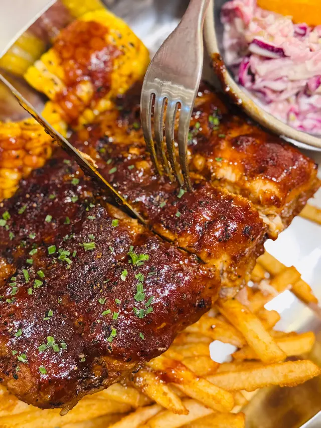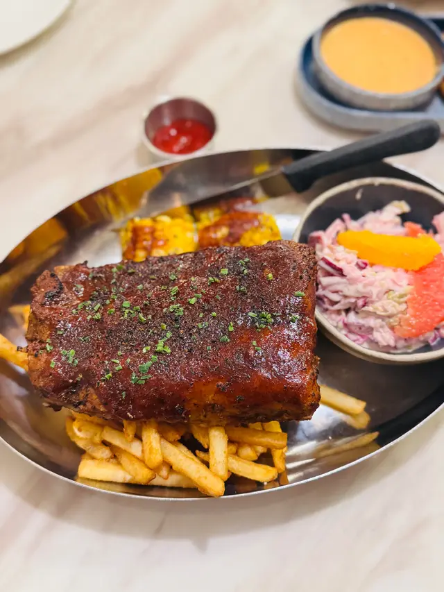 今晚同老公去拍拖食飯我地分別嗌左兩個dinner set❤️💗晚餐套餐一🔹招牌原木煙燻美國豬肋肉骨豬肋排有淡淡既煙燻香氣,肉質燉得軟爛,輕鬆脫骨。調味係經典既甜口醬汁,食起黎唔膩🔹甘筍湯湯餐係順滑既甘筍濃湯,味道清甜🔹熱檸檬茶熱檸茶普普通通,茶味算濃💗晚餐套餐二🔹香烤挪威三文魚扒配芥末橘柳忌廉汁三文魚扒火候控制得唔錯,外皮微焦,入面肉質依然濕潤。搭配既芥末橘柳汁好清爽,帶點微酸,可以提升魚肉既鮮味🔹黃金洋蔥圈洋蔥圈炸得金黃酥脆,口感不錯🔹蜜桃紅茶蜜桃紅茶有淡淡的果香,甜度適中,比較解膩🛑期間限定:百福椒鹽豆腐煙燻菠蘿莎莎夾餅椒鹽豆腐外脆內嫩,同煙燻菠蘿莎莎醬幾搭。醬料酸甜微辣,令夾餅整體既風味更有層次兩個套餐主菜都處理得幾好,豬肋排和三文魚值得一試。限定taco組合也幾有新意…Read More