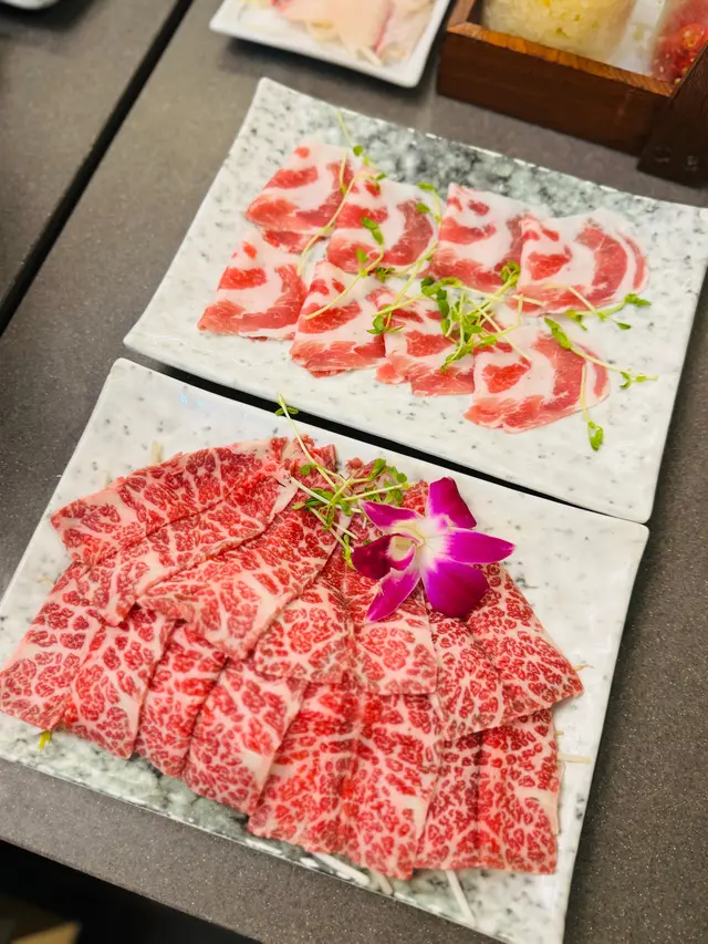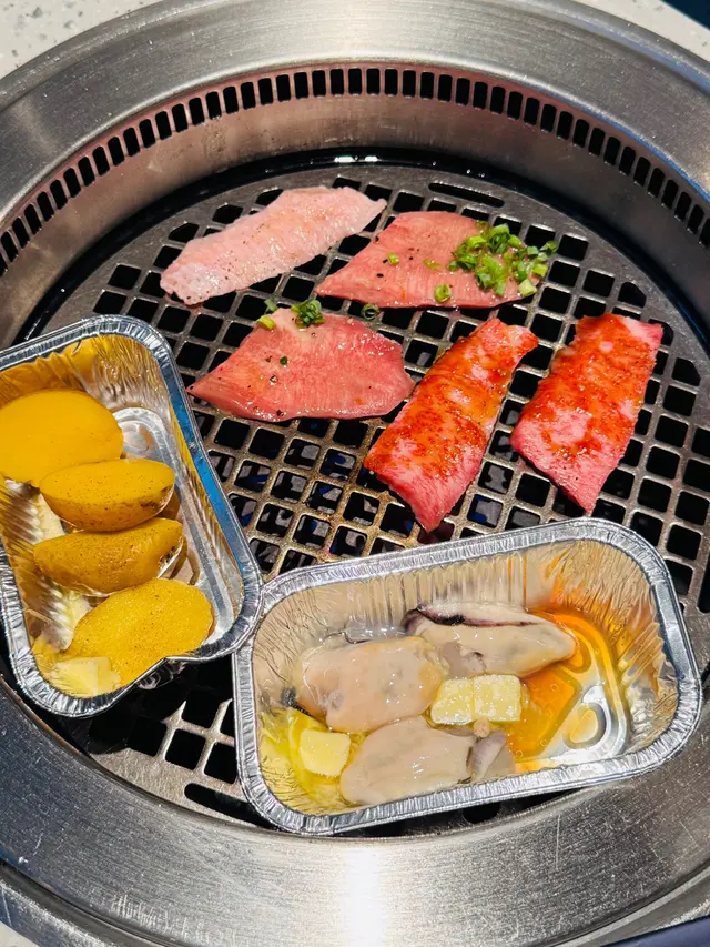 今晚去元朗食燒肉,質素唔錯,真係值得推介👍🏻大判燒黑毛和牛西冷嘅油花幾靚,食落軟淋,牛味都算濃,點埋溫泉蛋食仲惹味。跟住試咗黑毛和牛腹柳小排,肉質嫩滑,油份足夠,燒完幾香口。蔥塩味牛舌唔錯,口感爽脆,鹹鹹哋幾開胃。日本蠔都幾新鮮,燒完唔會太乾,保持到汁水。黑毛豚脛肉同日本產雞肉拼盤都係正常發揮。另外叫咗牛油男爵薯,外皮燒到脆脆哋,入面粉糯,加咗牛油幾香。KAKURA沙律同七味豆腐鍋可以清清味蕾。佐賀紫菜飯有大量嘅紫菜碎撈埋溫泉蛋食好正。飲品方面,橙汁同乳酸梳打都係預期嘅味道。甜品杏仁豆腐口感滑溜,雲呢拿雪米糍細細粒,作為一餐嘅結尾都幾滿足。今餐食得幾飽,食物質素唔錯,可以再嚟。…Read More