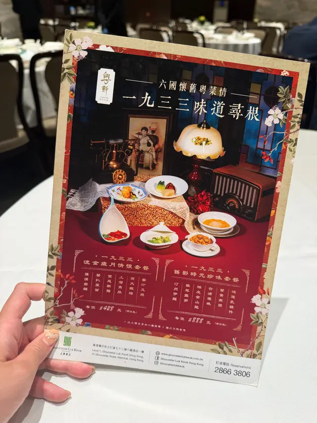 近排係social media見幾多人講呢個懷舊套餐心思思去試下 尋晚終於約到朋友一齊去食❤️呢個套餐主打懷舊菜 整體食落係穩陣幾道菜都有驚喜👍🏻《1933流金歲月》情懷套餐 $428位🔹蜜汁叉燒 - 做得唔錯。肉質軟腍,蜜汁香甜適中,唔會太甜。外層有少少焦香🔹煎大蝦碌 - 蝦夠大隻,食落新鮮爽口。煎得火候幾好,有蝦嘅鮮味,調味亦簡單得宜🔹上湯魚肚 - 湯底清,飲落舒服。魚肚處理得乾淨,冇異味,口感滑溜🔹雙鳳朝陽 - 即係雞肉&乳鴿肉。肉質嫩滑,味道唔會太濃味,係幾特別既菜式🔹蟹扒菜苗 - 蟹肉分量合理,味道鮮甜。菜苗嫩口,兩者搭配幾好,芡汁唔會太厚🔹羅漢齋麵 - 材料豐富,味道清淡。麵身吸咗湯汁,食落幾入味,作為最後一道菜幾合適$428呢個價錢,食物質素對板,能夠食到幾款傳統手工菜,都算係合理。適合想靜靜地食餐飯,試下懷舊風味嘅人💗…Read More