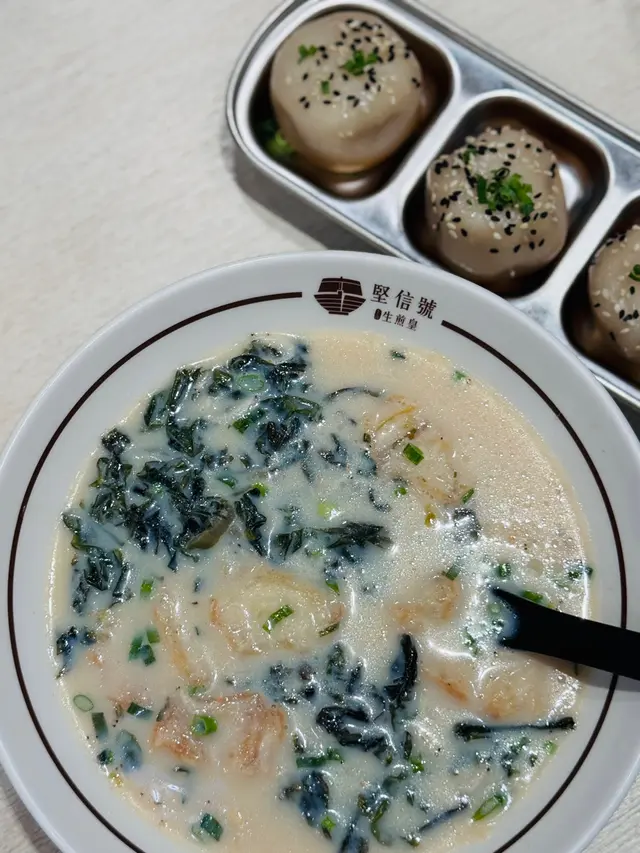 一直以為生煎包得中午/晚市先食到,原來依家堅信號都有醒晨早餐食喇!有11款套餐選擇,價錢由$29-$58仲可以用優惠價加配食物。今次我就嗌左上海鹹豆漿 + 生煎包。鹹豆漿口感綿滑,配料足,有榨菜紫菜油炸鬼。而生煎包貫徹皮薄底脆,一咬湯汁爆出,肉餡鮮美,果然係招牌!凍檸茶茶底濃郁,檸檬清新,甜度適中。另外,私心推介幾款每次必點既食物💗🍚 秘製豬扒菜飯豬扒醃得入味,煎得外香內嫩,菜飯清爽唔油膩🍚 上海排骨菜飯排骨炸得金黃酥脆,肉質保持鬆化🥬 上湯火腿娃娃菜娃娃菜煮得軟淋清甜,上湯有火腿鹹香🥢 胡麻醬雞絲粉皮粉皮爽滑,雞絲嫩口,胡麻醬香濃醒胃…Read More