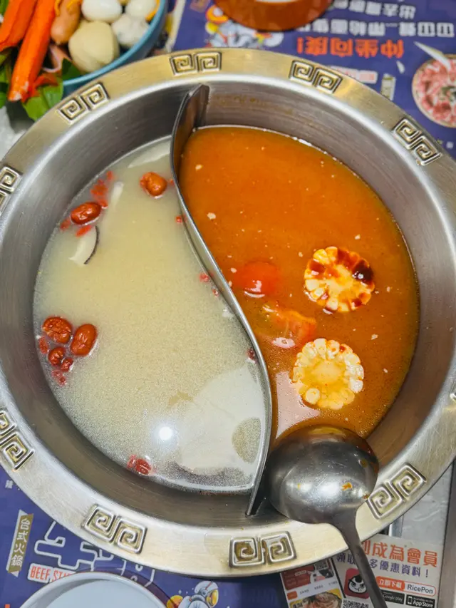 中午同幾個朋友去咗試呢間火鍋放題任食四個鐘 時間好充裕 可以慢慢食慢慢傾湯底揀咗鴛鴦鍋:🍅 蕃茄豬骨湯:味道清甜,唔會好鹹,用來淕蔬菜同豆腐好夾。🥥 椰子雞湯:椰香味幾出,湯底有幾件鮮雞,幾嫩滑,飲落好舒服。重點推介:🐍 鱔片:係其中一個回本位。切得夠薄,淥十零秒就食得,口感爽脆,冇泥味,我哋encore咗幾轉。🐦 乳鴿:估唔到放題都有乳鴿食。雖然唔係話極之肥美,但即炸出來皮脆肉香,以任食來講收貨有餘。🍨 Häagen-Dazs雪糕:甜品係Häagen-Dazs,食完火鍋整返個雪糕,完美。其他配料都唔錯:· 手打蝦滑:幾彈牙,食到蝦粒。· 牛小排:脂肪分布幾好,唔似一般放題咁薄· 炸魚皮:即炸,好脆身,就咁食或者放湯淥正· 炸枝竹:吸湯力強,點蕃茄湯底好夾· 白鱔片:除咗普通鱔片,呢款脂肪多啲,更香口· 自助飲品櫃:有汽水、紙包飲品,啤酒環境坐得舒服,收碟速度合理。以呢個價錢,有齊鱔、乳鴿同Häagen-Dazs,款式算多,係一個幾穩陣嘅選擇。如果想搵個地方同朋友消磨下中午,可以試吓。…Read More