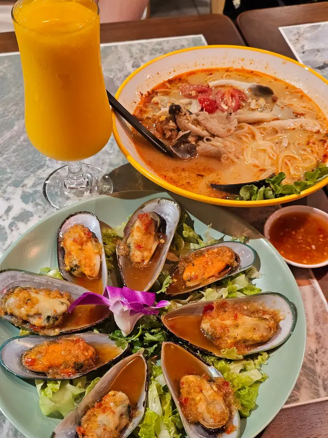 市面上有唔少連鎖餐廳都未必keep到水準難得搵到間有心筲箕灣新店出品依然好食職員好有禮貌而手機點單選項都貼心大部分菜式都有少辣少甜選擇辣汁菜式一定唔可以錯過8隻青口好豐盛啲調味超惹味但無蓋過青口味本身鮮味以前食過魷魚都好正最鐘意叫冬蔭功湯粉有得飲又食得飽雞肉清清地不會太油串燒3串都夠食啖啖肉豬肉油脂豐富同花生粒沙嗲醬好夾長蔥豬頸肉沙律洋蔥偏甜唔辛口可以就咁食青瓜、紅蘿蔔、芹菜做到西芹的清爽效果芒果沙冰賣相吸引少甜飲得更健康…Read More