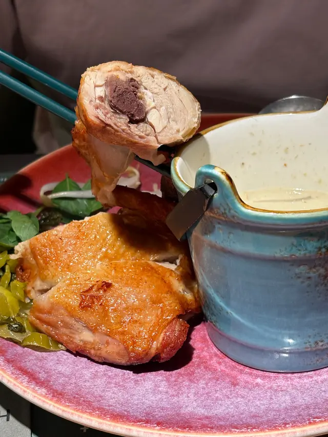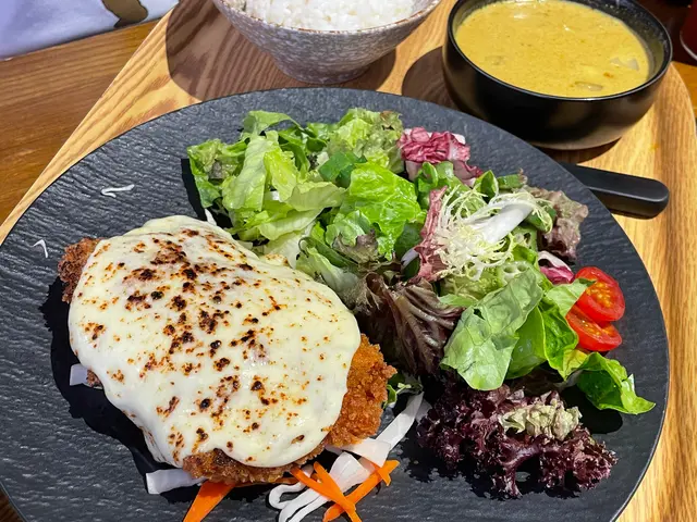 我太太就點咗另一款令人超驚喜嘅係「綠咖哩雞腿飯」。咖哩一上枱已經香氣撲鼻,辣度適中,而主角!!!雞腿!!! 更是烤得恰到好處,做到外皮香脆而雞肉依然保持鮮嫩多汁,平時健康無食雞皮都忍唔住食晒