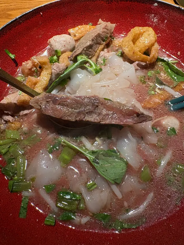 最近先知道沙田市中心開咗一間泰國餐廳,餐廳餐點由名廚主理,聽講開張之後一直幾有人氣。餐廳嘅特色裝修充滿泰式風情,彷彿置身喺泰國街頭,未開始食已經覺得返咗曼谷😋我點咗牛肉船面,絕對是必試之選。因為佢呢一碗集齊了鮮嫩牛肉、彈牙牛丸、軟腍嘅燉牛腱肉,同埋膠質豐富嘅牛筋