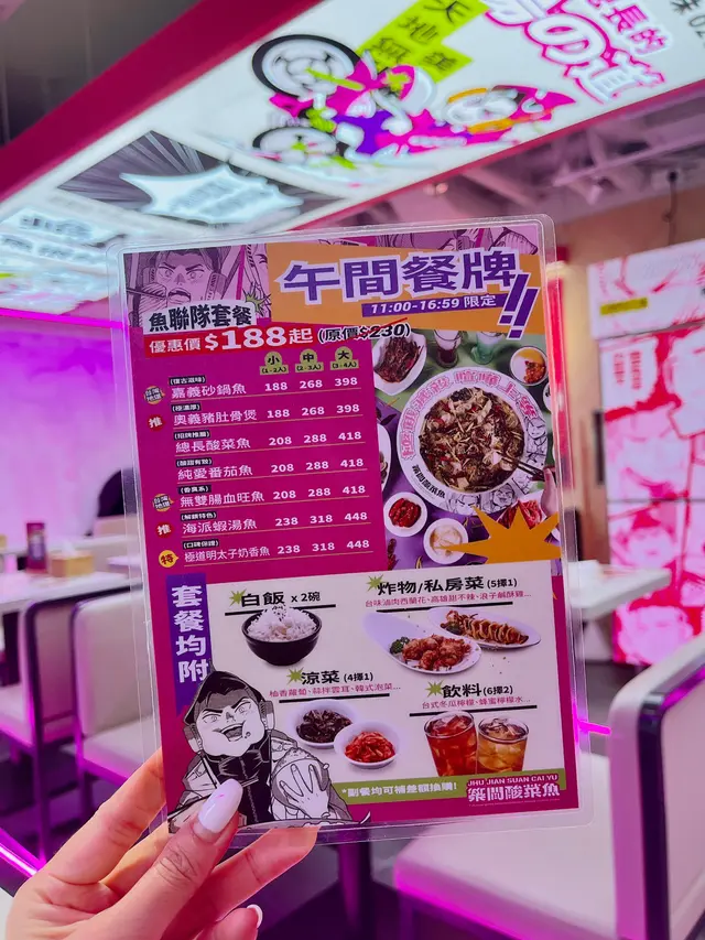 早幾日見到IG有人share呢間全港首間台式酸菜魚今日就即刻嚟試吓成間鋪都印咗好多漫畫門口餐牌、好似真係未試過食台式嘅酸菜魚見到平日Lunch menu 超抵食可惜平日唔係呢頭返用Qr code 落單無雙腸血旺魚就係睇到佢個簡介之後好想食臭豆腐!大腸!鴨血!仲要係辣鍾意食呢啲嘅人一定要嗌呢個(雖然應該呢度主推酸菜魚、哈哈呢個呢係啦~未到就好似係台式嘅臭臭鍋、再加上魚片、其實又幾夾除咗有好多魚片之外、仲有好多芽菜、木耳、金菇、鴨血有成4-5大舊、豆腐都有兩款、唔洗驚唔夠飽因為佢仲有王子麵原來呢一款似凍豆腐嘅先係佢哋嘅臭豆腐!食落去都幾臭普通人應該1人1鍋完全無問題但如果大家想嗌小食,可能就多啲一齊share會好啲~因為份量都多~嗌左3款~因為款款都想試甜不辣好香脆推呢個係炸魷魚鬚味道都唔錯、不過我覺得粉可以薄啲~咁就會好食啲啦,不過台式嘅好似都係啲粉係咁反而覺得呢個小酥肉係三個面最好食好入味香辣又脆口一啖接一啖整體嚟講都幾驚喜好鍾意臭臭鍋魚片…Read More