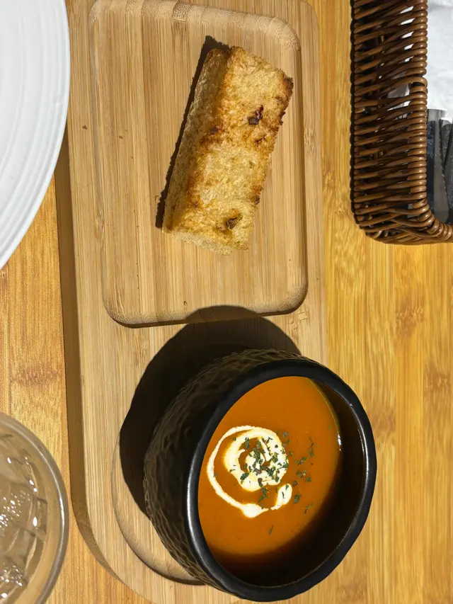 呢一間位於上環嘅隱世樓上cafe,好近地鐵站!行2分鐘就到~店內環境好乾淨,坐窗台位置,仲有電車打卡位!🐱mf編around 1730上到去都唔洗等,staff都好nice,唔會話過時間就趕人走~如果大家想搵個地方靜靜地做吓嘢,食個tea,呢度就啱曬啦~聽staff講呢度嘅主廚係國際Cafe 前總廚,唔怪得啲嘢食咁高質啦😌今次叫左2個lunch set,lunch set 去到1800㗎😌個set包野飲㗎,可以揀咖啡/梳打水/椰子水/蘋果汁/橙汁~而我仲加$15要左個田園沙律同埋加$18要左個餐湯🤤🤤❤️田園沙律沙律嘅sauce係用咗香橙油醋汁!好特別,酸酸甜甜咁,配埋上面嘅荔枝就更加fresh,好開胃😝❤️ 餐湯是日餐湯係蕃茄湯,蕃茄湯好濃,口感都好rich🫡 配埋意式香草包,香草包好香脆!蘸埋個湯一齊食就更好食啦😆❤️忌廉煙三文魚意大利飯Risotto嘅忌廉味好香濃,濃郁嘅奶香配埋芝士,好邪惡🤤好中意佢嘅risotto做到唔會好乾又唔會好濕嘅感覺😗配埋煙三文魚一齊食,一啲都唔會膩😆仲會愈食愈上癮😍❤️ 番茄大蝦手工意粉手工意粉要做得好食係好難㗎😗但呢度嘅手工意粉好彈牙,好有咬口🥹🥹配埋番茄醬,酸酸地,意粉仲要好掛汁,食落去好舒服😌大蝦🍤仲要好新鮮、爽口😆❤️凍美式咖啡飲落去好balance,想提神一流😛❤️椰子水想飲啲fresh 啲嘅,呢個就啱曬啦~仲可以去水腫tim😏😏😏呢間cafe仲要免加一,set包野飲仲要冷熱同價🥹好抵食㗎!平日放左工約左fd食飯,不妨試吓呢度啦🫶🏻…Read More