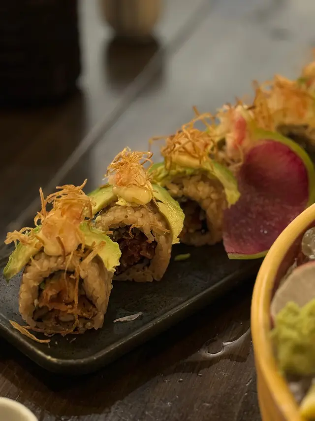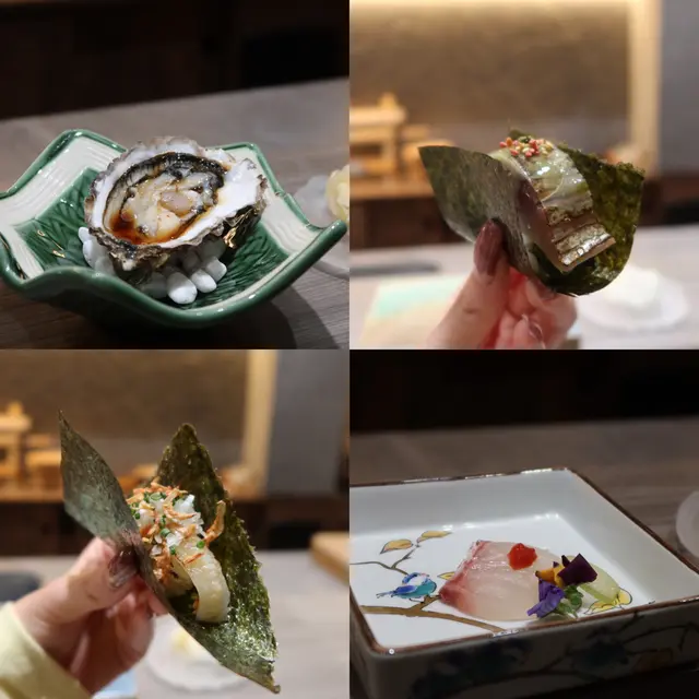 哇🤩🤩呢個彩羽太卷真係好吸引呀!餐廳既omakase set都唔錯,但係佢嘅太卷同刨冰實在太特別🥰Lunch set除左沙律同茶碗蒸之外,有四款刺身、八款壽司、手卷、玉子燒同甜品~四款刺身都唔錯,真鯛刺身本身較為清淡,但係加咗莓蓉係上面,非常開胃。大分縣真蠔加入咗松露醬汁,味道更有層次嘅特別。佢嘅泡芙我好鍾意,泡芙入面係滿滿嘅安康魚干蓉🙈好幸福而鰆魚煙燻後仲加入咗薑蔥,味道濃郁壽司整體都唔錯,雖然話都係大路食材,不過冇咩可以挑剔。我最鍾意竟然係佢嘅鯖魚,處理得好好🙈然後就係我覺得最amazing嘅彩羽太卷~有海膽、中拖羅大拖羅、蛋黃,加埋一齊真係好邪惡!太卷好澎湃,基本上一啖係食唔完嘅😂非常幸福!最後我仲試埋佢嘅日本刨冰,揀咗黑糖水信玄餅味😝師傅會喺客人面前製作刨冰,又好睇又好味🙈都屬於幾特別嘅體驗!…Read More