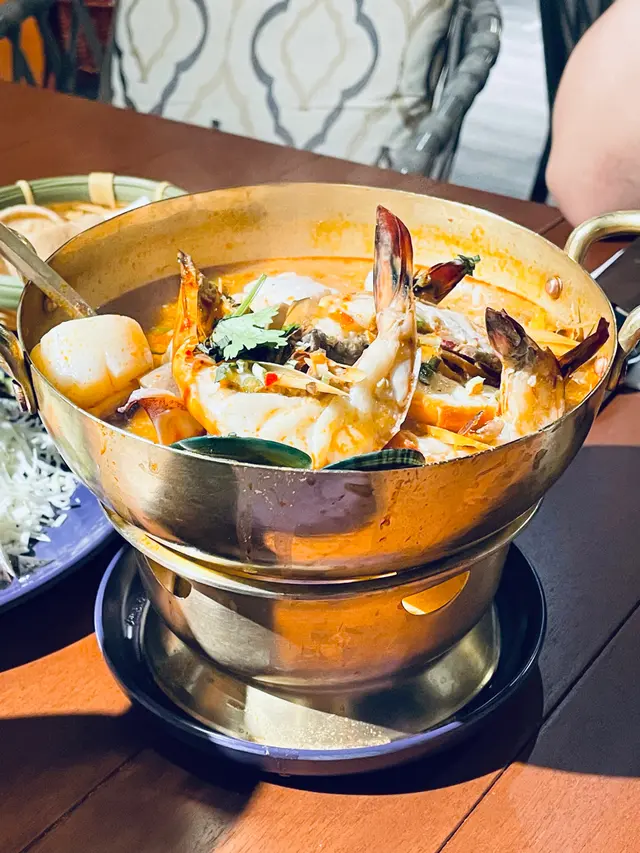 可能太耐冇食泰國嘢嘅關係,嚟到一打開個餐牌就好多嘢都想叫😂今次叫咗個冬陰功,上菜嗰陣會燃點一個細火keep warm👍🏻所以飲到最後都唔會凍晒,入面有勁多海鮮🦐🦞🦑🐟想講入面啲魚肉好彈牙,好好食!仲要有花膠!湯頭酸酸辣辣,唔會太過搶喉,非常開胃💕💕跟住再點左個泰式生蝦,冰冰地好爽口,夾埋塊蒜片一齊食,少少辛辣咁樣,好啱夏天食🥰最後仲嗌咗個蟹肉炒飯,本身只係諗住隨便嗌一款主食,可以飽肚少少,點知出奇地覺得幾好食喎🤩🤩蟹肉非常多不特止,仲有蝦同埋蟹子!食落好香,米飯粒粒分明!仲要有蟹籽嘅脆口感!雖然佢哋並冇放喺餐牌Top嘅位置,但真係非常推介👍🏻👍🏻總括嚟講嘢食都好好味,仲要咁啱安排咗個望住海景食飯嘅位置,感覺真係好寫意,好啱情侶過嚟一齊食嘢👍🏻👍🏻…Read More