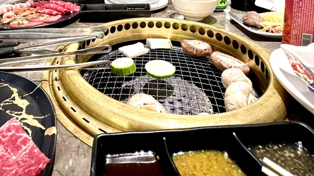 8號風球掛起前,剛好經過觀塘,決定到APM找個地方吃午餐,見到5樓 "佐賀谷燒肉" 有個抵食午餐。進去點了一個$118和一個$158的燒肉🥩盛盒,兩種肉質都相當不錯,烤起來鮮嫩多汁,口感十分滿意😋。另外再追加一個小牛排$48。這裡的飲品🥫🧃,蔬菜🥒🥬,姑類🍄🟫🍄,水果🍍🍉,沙律🥗和甜品🍦都是無限供應,還有少量熟食🥘🥟,整體來說非常抵食。店內氣氛也很舒適,是一次愉快用餐體驗