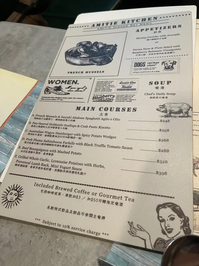 黎到見裝修簡約有法式feel,環境舒適,非常適合拍拖或聚會。我哋點咗一個煎豬扒,另外一份大蝦配墨汁意大利飯,最尾留肚特登點埋佢個蜜瓜哈密瓜沙冰。值得講兩份煮食嘅擺盤都好靚,啱晒溝女,份量都夠男仔食,味道唔錯添,食得出係西式西餐唔係港式西餐。個冰酒好啱打卡,又似蛋糕嘅特別呢度嘅服務都好值得一讚,店員親切又友善,令整個用餐體驗更加愉快。平時晏晝嚟Hea下都得。夜晚嚟拍拖就再適合啲如果經過荔枝角想食好啲嘅西餐就嚟試吓啦!…查看更多