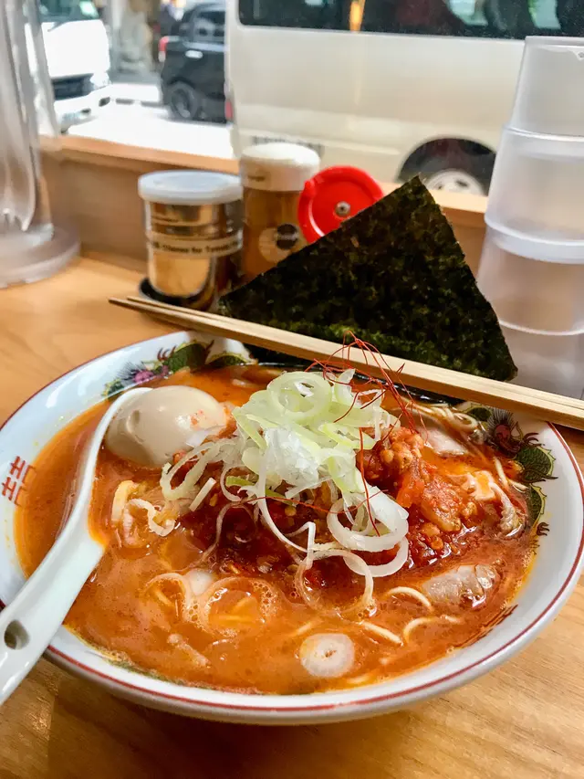 紅通通的辣蕃茄豚骨湯底讓人胃口大開。蕃茄的酸甜緩解豚骨湯底的肉膩感,微辣令湯頭整體味道更有層次。不過愛吃豚骨拉麵的朋友會覺得豚骨味不夠,還是白豚味道比較濃郁。拉麵上加了一些香辣蕃茄肉醬,味道比湯底更辣更濃郁,可按自己口味拌勻再吃。每枱都放置調味盤,當中有一瓶赤豚專用的芝士粉。芝士粉令拉麵味道更豐富,更有層次感,但沒有讓辣蕃茄豚骨湯味道更突出。若想嘗試不同味道的拉麵配搭,不妨一試。「幸」保留了博多拉麵知名的「替玉」制度。「替玉」源於福岡博多地區,拉麵店店家為了防止極細麵糊掉,麵條份量較少,待客人吃完覺得不夠,再免費追加麵條。老闆知道我們點了替玉,特意提醒我們不要一次把湯喝掉。雖然朋友留了湯和辣蕃茄醬,但追加的麵條沒有起初吃的那麼入味,大概麵條吸收湯汁的時間不夠,下次讓麵條在湯裏放久一點,味道會更好。…Read More
