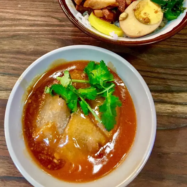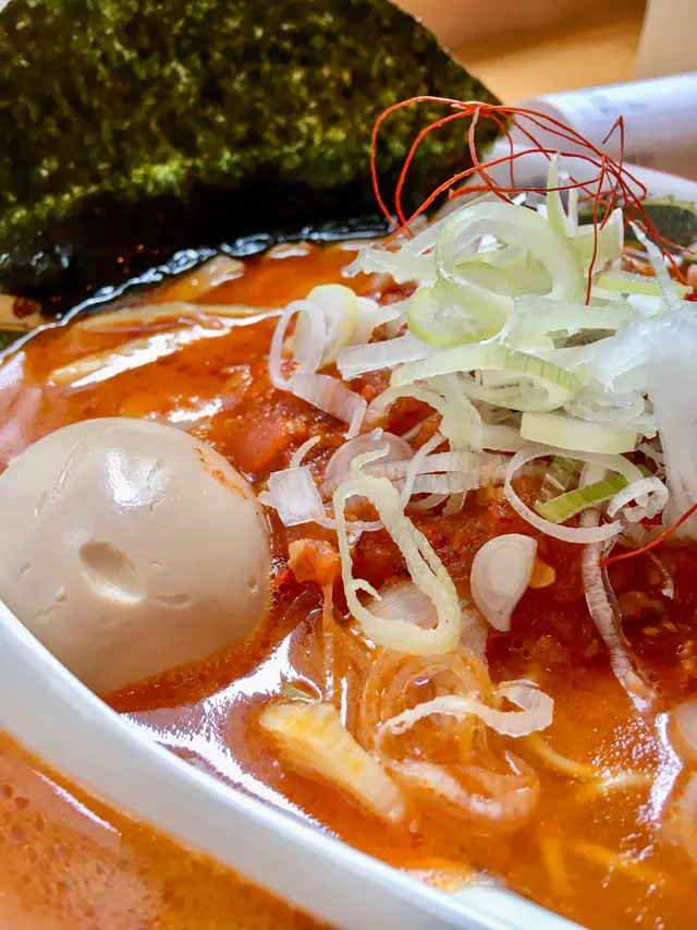 湯底很白濁,質感稠稠的,帶點膠質,並傳來陣陣的豬骨香味,非常誘人。由於豚骨湯底十分濃郁,吃到底時感覺有點膩,這時把紫菜吃掉,轉換一下口味,解除湯底的油膩感。最後我把整碗湯喝掉也不感口乾,感覺很真材實料。吃麵時,湯汁會附在麵條上一併品嘗,而麵條的硬度會影響麵與湯的平衡感。因為極細麵容易吸收湯汁易糊,而很多餐廳都未能控制好麵的軟硬度,所以我平常只吃粗麵。然而這碗博多系極細麵拉麵以硬度稍硬來呈上,保持拉麵的勁道,不會被湯汁蓋過它的美味,口感非常好。叉燒選用肩胛肉,帶筋又帶點脂肪,肉味較豐富。肉質被燉煮得軟糯,而且比一般叉燒切得更薄,更能吸收湯汁。薄薄軟柔的口感吃下去都不覺得肥膩,更多一種少吃多滋味,讓人吃過翻尋味啲感覺。半熟蛋生熟程度掌握恰到好處,蛋白很嫩,蛋黃呈琥珀蜜蠟狀,稠稠流流的狀態令人垂涎三尺,味道比一般的更甜蜜。2\赤豚
