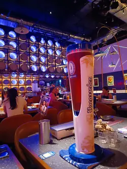 香港的食肆原來都仲有好多無限可能性,就好似今日來嘅呢一間,有grilled,有beer,有fish,還有好多好多。餐廳的目的就係以拉斯維加斯娛樂場為設計藍本,呈現五光十色的打卡環境,更不定期安排現場表演(是晚有吉他彈唱),讓你在輕鬆的氣氛下享用川味烤魚、串燒等美食,呢晚所見,有年輕的喜愛熱鬧的情侣,有三五知已來一齊啤一啤,亦有家庭式的一家幾口聚餐,隔離枱的3 litre的blue girl 🍺亦好震撼。哋點咗店長推介的两様餸“秘製胡椒海蝦”和“冰鎮咕噜肉“,大大隻海蝦鮮甜彈牙,個sauce 上有一粒粒胡椒,又靚又特别;咕噜肉整到晶瑩通透之餘,仲有菠蘿,藍莓,提子配搭,色,香,味俱全。“惹味砂鍋椰菜花”熱辣辣上台,小心小心冇咁心急,慢慢來嘆先至係享受;好大份的“燒大茄子”極之惹味,就咁睇好似一條烤魚,又平又好食,建議必點。飲品叫咗一杯“超級水果茶”和一杯cocktail ,水果茶大大杯,有新鮮菠蘿,西瓜,藍莓,超好飲;Cocktail名叫 "Nothing",但佢唔係nothing吖,佢有靚麗的顔色,亦有藍莓,檸檬和裝飾的“纸菠蘿”,一切都好俾心機,值得來試吓。…Read More