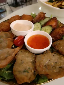 又係官塘,仲要係喺一座寫字樓裡邊的食肆,感覺比較少有,以前來親官塘,除咗APM,鱷魚恤大厦之外,好多時啲食肆都係喺工業大厦裡邊🤪🤪呢間係泰國菜亦都係私房菜餐廳,裝修都幾靚,亦有啲大象的decorate。“炸物拼盤”貪佢乜都有,total有12件,分別有雞翼,咖喱角,魚餅,蝦餅4樣嘢,每樣3件。雞翼香口脆卜卜,魚餅有魚味,蝦餅有蝦味,唔錯唔錯。“斑蘭炙鳳”有特色,味道濃郁,半隻都幾多,食到停唔到手,建議趁熱辣辣時食,味道至佳。“泰火什菜”勁多菜,有椰菜花栗米西蘭花...補番呢幾日少食蔬菜的quota,真係要食多d蔬菜,對身體有益㗎,泰式煮法更加惹味;試過“白牛”、“黑牛”、今次第一次試“綠牛”,感覺特別,綠色的雪糕及黑色的熊仔冰相映成趣,而“菠蘿冰”飲嘅同時亦可以食到菠蘿粒粒都可以好開心,4件彩虹椰汁糕代替了平時食開的芒果糯米飯,有新意,有椰汁,有彩虹,又不會太甜更加開心。…Read More