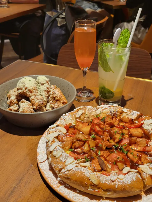 平時連鎖嘅pizza食得多 今次去試下呢間韓式fusion Pizza🍕 炸雞🍗呢間Pizza Maru 位於海港城LCX 唔單止位置方便仲可以望到維港海景🥰一邊望住個夜景一邊食炸雞pizza好chill😆😆餐廳環境潔淨明亮 美式裝潢店員服務態度好好👍🏻🍕薯角炭燒雞肉芝加哥 (蜜糖杏仁邊) $223呢個pizza超級足料 可以見到面頭有滿滿嘅配料😍😍有炒洋蔥 蘑菇🍄 Maru香雞🐤 薯角 蕃茄🍅成個pizza都有 滿滿嘅馬蘇里拉芝士🧀 芝士條🧀 忌廉芝士慕絲🧀真係芝士控天堂 見到拉絲即刻胃口大開😍😍另外pizza用咗蜜糖杏仁邊 滿佈糖霜甜甜地 成個口感層次非常豐富😋🍗蜂蜜牛油秘製炸雞 $118@6炸雞可以見面頭淋咗大量蜂蜜牛油粉炸雞熱辣辣 外皮炸到金黃色好吸引😻估唔到呢個炸雞都好有驚喜 炸得外脆內嫩外皮嘅炸粉唔會好厚 外皮酥酥脆脆咬落去仲好Juicy一啲都唔乾 雞肉仲好嫩滑😆😆🍸Bellini $58用咗Prosecco做底 配搭Peach Puree🍑呢杯Bellini都幾易入口 酒精味唔會好濃 白桃嘅香甜配搭prosecco嘅酸好refreshing🍹Lychee Cooler Ade $48荔枝嘅香味好突出 飲落去清清甜甜食完pizza炸雞解膩一流😚…查看更多