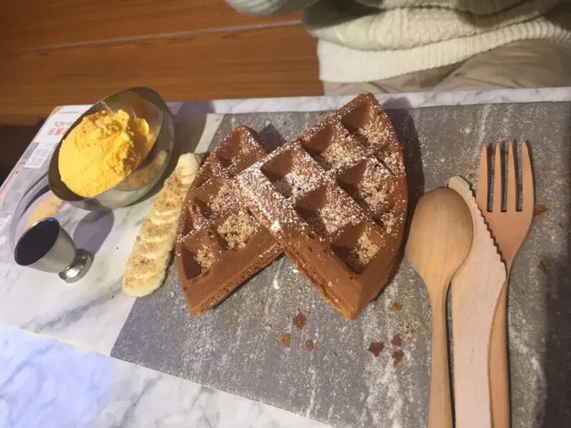發記甜品。楊枝甘露味道很地道傳統 芒果有果香味 新鮮甘甜 很值得一試 朱古力窩夫配芒果冰淇淋 窩夫表皮烤的很酥脆 內餡軟嫩 配上蜂蜜風味獨特 用了蜂蜜糖口感不會太甜哦!由於自己喜歡吃芒果 特地配了芒果冰淇淋 芒果味道很足很好吃!配的刀叉也相當有特色的純木刀叉,但是也不是很環保哦!Anyway!香港老牌甜品,很值得一試!…Read More