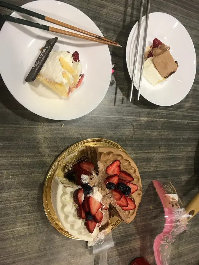 蛋糕的味道还是很好的,草莓很香,奶油味道很好,不会塌,好像是植物和动物混合的。不过,重点是:340元的生日蛋糕,这个价格不算便宜,但是既不给餐具,也不给火柴,还不给生日帽,是因为支持环保吗?这样的话,为什么还要用塑料包装,塑料蛋糕盘呢?:)下次应该不会再来了,如果大家想买生日蛋糕的话,要么去找服务员要盘子,要么自己买盘子,千万不要像我一样回家了,准备开始吃才发现什么都没有,点蜡烛的打火机都是找邻居借的…Read More