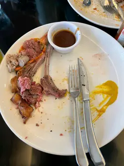 朋友嘅牛肩扒同我嘅羊扒啲筋多到真係完全食唔到