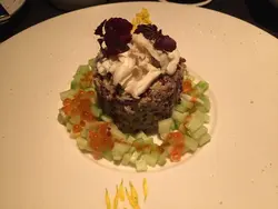 意大利小麥粒配扇貝,龍蝦,花椰菜汁及甜酸蔥片