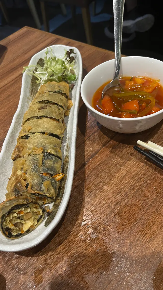 今日經同事介紹專誠嚟呢間「回春」晚餐食物質素相當不錯,先來秘製冬蔭青口海鮮蝴蝶粉,蝴蝶粉軟硬適中醬汁有少少嘅酸辣味好開胃,當中青口鮮甜之外其中蜆肉魷魚份量十足切成粒令吃每口粉都不斷食到蜆肉魷魚,口感豐富!另一道菜我好深刻就係松茸味噌三文魚扒定食,有厚實嘅三文魚扒、菇味重嘅松茸菇炒飯、清清哋嘅滑豆腐,仲有生果甜品整個定食賣相獨特相當吸引令食慾大增!當然唔少得甜品特意選咗伯爵茶芝士蛋糕好滑好軟而且唔太甜,不錯!…Read More