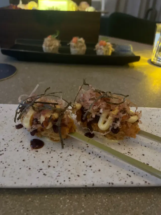 今晚專程同朋友去尖沙咀Room3享用晚膳因為聽好多朋友講呢間居酒屋好有特色,除裝潢非常有型有格外食物方面都好有創意!真心不錯👍吉列蠔$58⭐️⭐️⭐️⭐️香脆加咗沙律醬提味迷你蟹王蟹肉窩夫撻$68⭐️⭐️⭐️⭐️⭐️滿滿的蟹肉蟹王鮮味無窮孜然黑豚腩$38⭐️⭐️⭐️⭐️豚肉腍滑西班牙黑豚玉子燒$38⭐️⭐️⭐️⭐️玉子與豚肉好夾雞翼釀鮑魚$68⭐️⭐️⭐️⭐️創新配搭鮑魚好彈牙白鱔$68⭐️⭐️⭐️⭐️肉質飽滿爽脆海膽帆立貝$78⭐️⭐️⭐️⭐️海膽勁鮮味配帆立貝絕配十分鮮甜北海道辣味魷魚肝汁松葉蟹肉意大利麵$98⭐️⭐️⭐️⭐️⭐️魷魚汁及蟹肉鮮味滲透意大利粉好惹味火炙牛海膽紫菜TACO壽司手卷$88⭐️⭐️⭐️⭐️鮮脆飲品方面極欣賞👍👍Geisha Story呢款酒賣相一流Empress是月光寶盒中之美酒甜品都唔錯菠蘿焦糖燒、自家製紅豆布丁👍👍…Read More