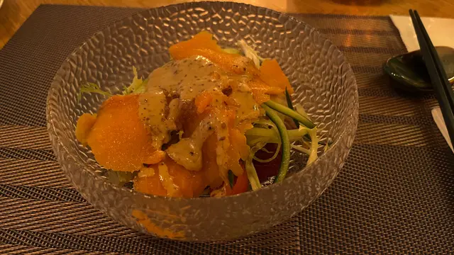 今晚為朋友慶祝生日特意到銅鑼灣品嚐鐵板燒共享晚餐,坐下侍應即送上免費的意大利玫瑰花茶,茶香加上柔和的光線好放鬆!侍應們殷勤的招待值得讚一讚!三文魚沙律又厚又大塊的煙三文魚蟹肉海膽松露糖沁蛋未食已經聞到強烈的松露香味再加上鮮味嘅蟹肉鮮甜甘香嘅海膽同柔滑嘅糖沁蛋一齊食非常軟滑香濃整個口腔留有餘香好滿足今日時令海鮮是蠔用鐵板輕輕煎蠔剛剛熟但又帶點鬆脆大大隻嘅蠔夾埋櫻花蝦炸蒜蔥一齊食特別香脆活鮑魚蟹肉海苔醬賣相十分吸引侍應建議先食原味食它的鮮,跟著再嚐配上蟹肉海苔醬又另有一番滋味,當中還有煎內臟味道甘香夾埋紫蘇葉食又幾夾法國鵝肝配黑松露醬香濃的鵝肝入口即溶再配以黑松露醬簡直將這味佳餚推上最高層次!最後輕嚐青檸減油膩感薄燒A 5和牛香腍重牛肉味另外可以夾蒜片一樣好味道刺身帶子石腐鯛魚湯帶子的鮮甜加上新鮮的鯛魚超濃郁清甜的魚湯黑松露櫻花蝦炒飯粒粒飯分明既香又有嚼口雖然材料好似好簡單但個人覺得非一般的炒飯甜品雪葩輕甜清新好舒服…Read More