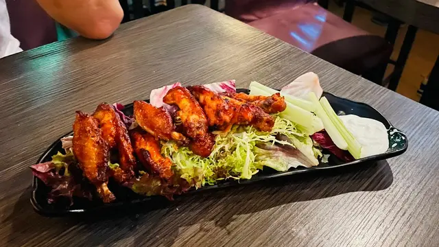 返工太辛苦, 星期三已經頂唔住, 決定同朋友收工健完身去尖咀飲返杯, 小下老細, 小下同事!!!!朋友介紹, 小弟第一次黎呢間酒吧, 位置算係尖咀入面, 旺中帶靜, 適合同朋友傾心事, 同伴侶摸下手仔。咁健完身又鬼咁餓, 決定叫埋小食, 諗住小食多滋味, 點知食左一份又幾好食, 結果叫左4份小食為大家介紹, 水牛城雞翼, 薯蓉腸, 迷你漢堡, 炸魷魚圈水牛城雞翼:夠入味, 少少辣, 食到停唔到口, 搞到我地愈叫愈多薯蓉腸:腸仔夠香口, 皮都夠脆, 配埋薯蓉當醬黎點, 一流!迷你漢堡:包皮夠香, 肉汁都夠, 薯條係粗薯果款, 真心唔差炸魷魚圈:唔記得影相, 香脆可口MOJITO:略嫌舊冰大左少少 LOL最後我地2個麻甩佬, 飲左3杯啤酒, 一杯MOJITO, TOTAL埋單$680, 人均消費$340聽朋友講平時呢度仲有LIVE BAND, 不過小弟呢晚就唔見, 希望下次再黎時候會遇到