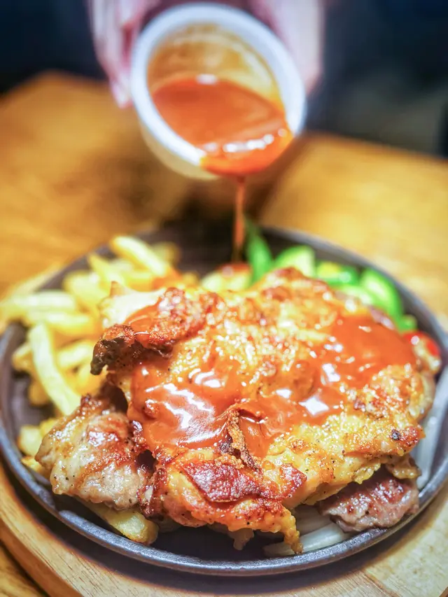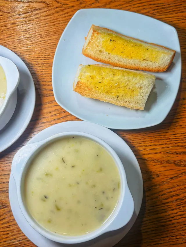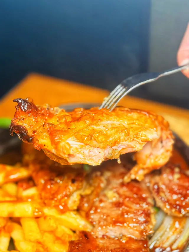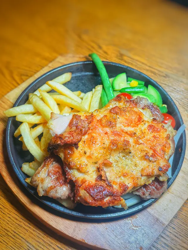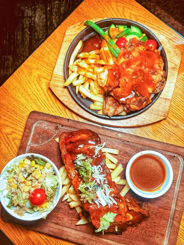 這次吃的餐廳就在紅磡港鐵站旁邊的商場,地點方便,餐廳有多款菜式供挑選,不論意粉、天使麵、千層麵、飯類或是扒類都應有盡有。我們二人各點了一個主食,然後點了一個小食和甜品。食物當中最喜歡餐廳的餐湯,當日的餐湯是翠玉瓜忌廉湯,湯味道十分濃郁,夠濃稠,而且加上翠玉瓜碎口感更豐富。而包也是用上蒜蓉牛油法包,不是普通的餐包,可見餐廳誠意十足唷!♡海鹽風薯條$38不知道點的兩款主菜原來都附有薯條,所以額外又點了一個薯條呢!薯條份量很多,可以選檸檬沙律汁或肉醬。♡鐵板薄西冷拼雞扒$120 🥢必點🥢伴碟的有翠玉瓜、車厘茄、粟米等,有薯條伴碟,西冷扒和雞扒都很軟腍,雞扒嫩滑大塊,食肉獸一定喜歡啊!♡蜂蜜味BBQ燒豬仔骨$148附有一碗沙律,同樣有薯條伴碟,豬仔骨表面有蜂蜜BBQ醬,味道甜甜的,頗為惹味。♡自家製心太軟$29看到有心太軟就二話不說點了來做甜品,這裏的心太軟配上的是忌廉和黃桃,心太軟朱古力味濃郁,刀子一切朱古力流心就湧出來啦~♡紅茶香茅蜂蜜 +$18轉點了熱的,感覺滋潤一點,香茅用來沖調熱飲味道特別。